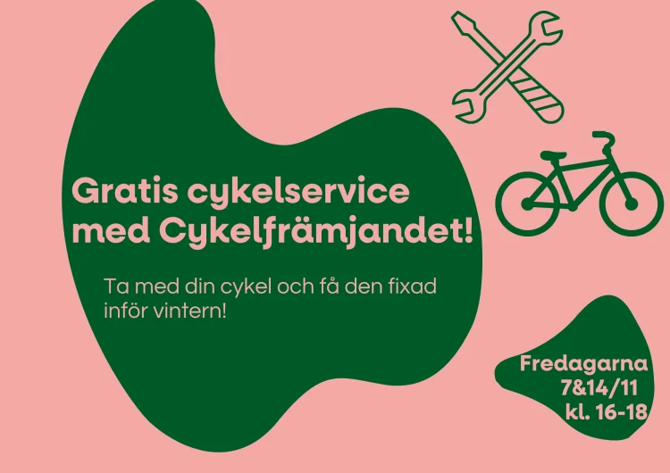 Cykelfrämjandet kommer till Jan stenbecks torg och servar cyklar två fredagar i november, den 7 november och 14 november kl. 16-18.
